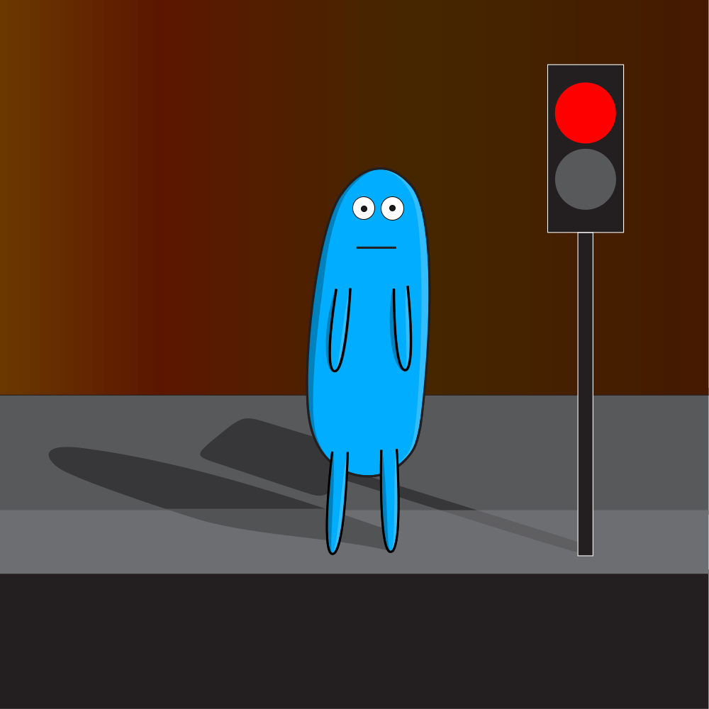standing at traffic lights.